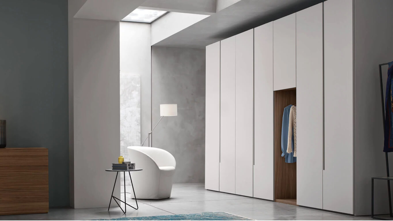 Step Up è un armadio ad ante battenti caratterizzato da una presa a gola integrata al design, in alluminio verniciato, che scende dall’alto per interrompersi pochi centimetri sopra il fondo. Un armadio moderno che gioca con l’effetto sospensione, per interpretare gli stili d’arredamento più essenziali e contemporanei.