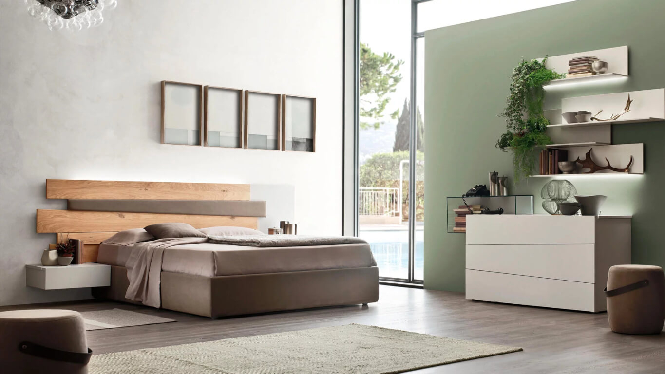 Scudo è la testiera dal design inconfondibile che definisce il carattere del letto matrimoniale. Le assi oblique in rovere massello si alternano a doghe imbottite, rivestite in tessuto o ecopelle, definendo uno stile dinamico, contemporaneo ed elegantemente rustico. La testiera Scudo si abbina ai giroletti Sommier e si coordina con il sistema Scuderia, per completare l’arredo della zona notte con comò, comodini e boiserie.