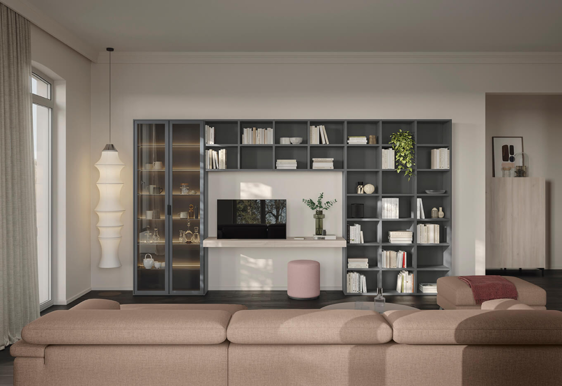 Aprire le porte a un mondo di nuove inedite possibilità. Con Infinity la libreria diventa elemento architettonico: i suoi moduli sono pensati per allestire nuove stanze, separare gli ambienti, ricavare angoli dedicati o isole di privacy.
