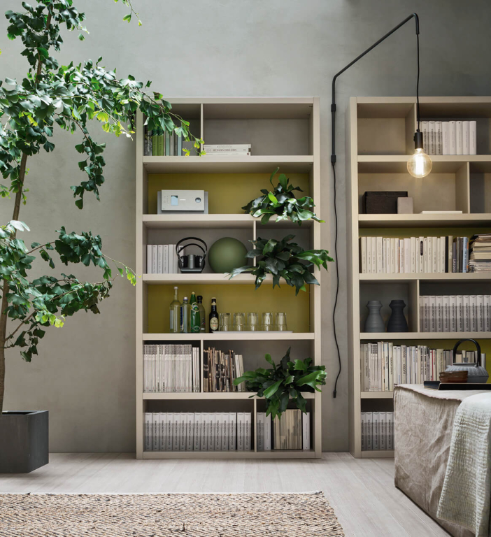 Il programma Seta consente di realizzare librerie complete per la zona giorno, capaci di contenere e arredare con equilibrio. A terra, per una struttura più tradizionale; sospese, per interpretare spazi moderni con linee leggere. Ripiani di altezze o larghezze sfalsate e l’alternanza di vani chiusi e a giorno rendono la composizione dinamica. I moduli sono personalizzabili per forme, finiture e misure, offrendo ampia libertà progettuale.