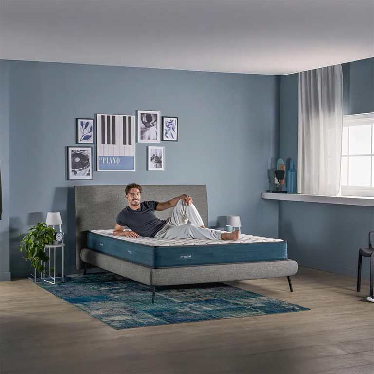 I materassi della Linea Dorelan Sleep sono pensati per chi vive giornate veloci e desidera un riposo pratico, confortevole e facile da gestire. La distintiva fascia blu racconta un materasso contemporaneo, fresco e ordinato nel look, ideale per case giovani e stili di vita in evoluzione. L’esclusivo Pillow Topper, applicato alla fascia laterale con sistema velcrabile, permette di personalizzare il comfort con uno strato superiore più morbido, removibile e lavabile: più igiene, più versatilità, più comfort su misura.