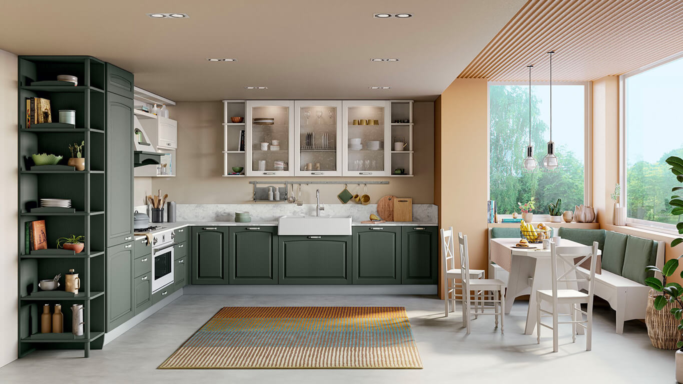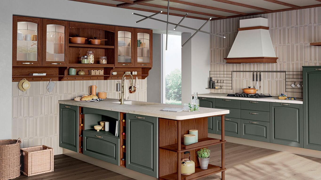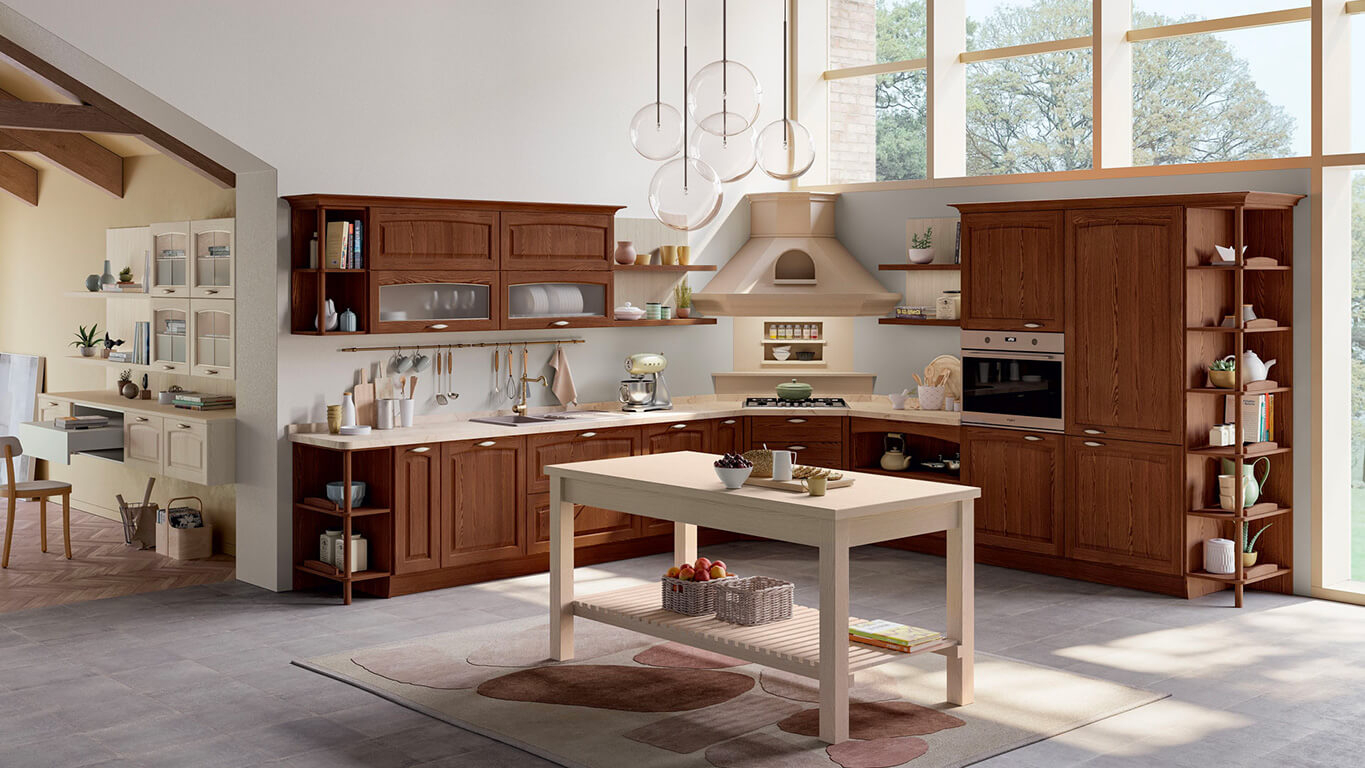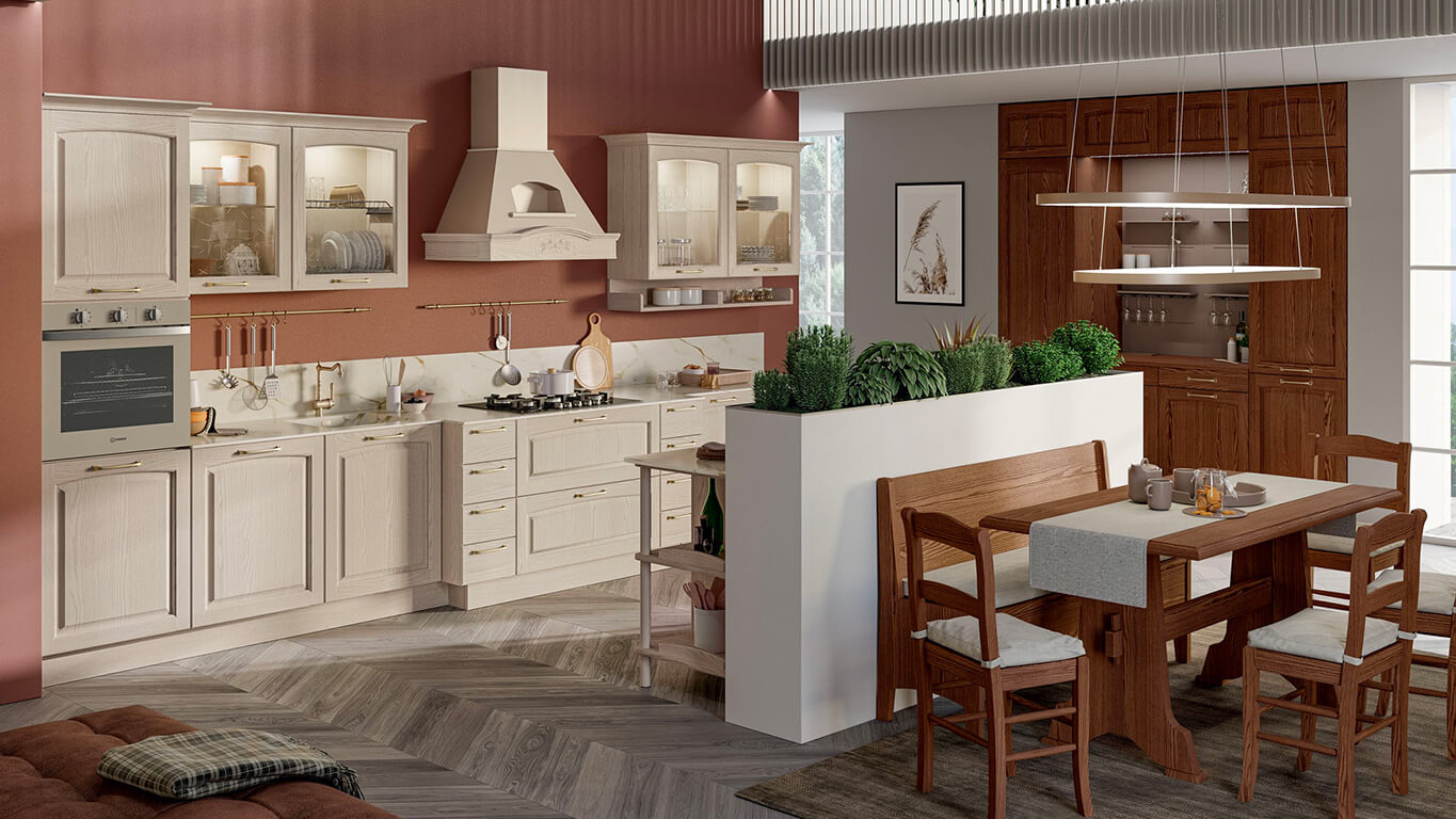 Cucina e living in una composizione che si esprime in due funzioni, operatività e socialità. Il bello di cucinare e stare insieme in un unico spazio