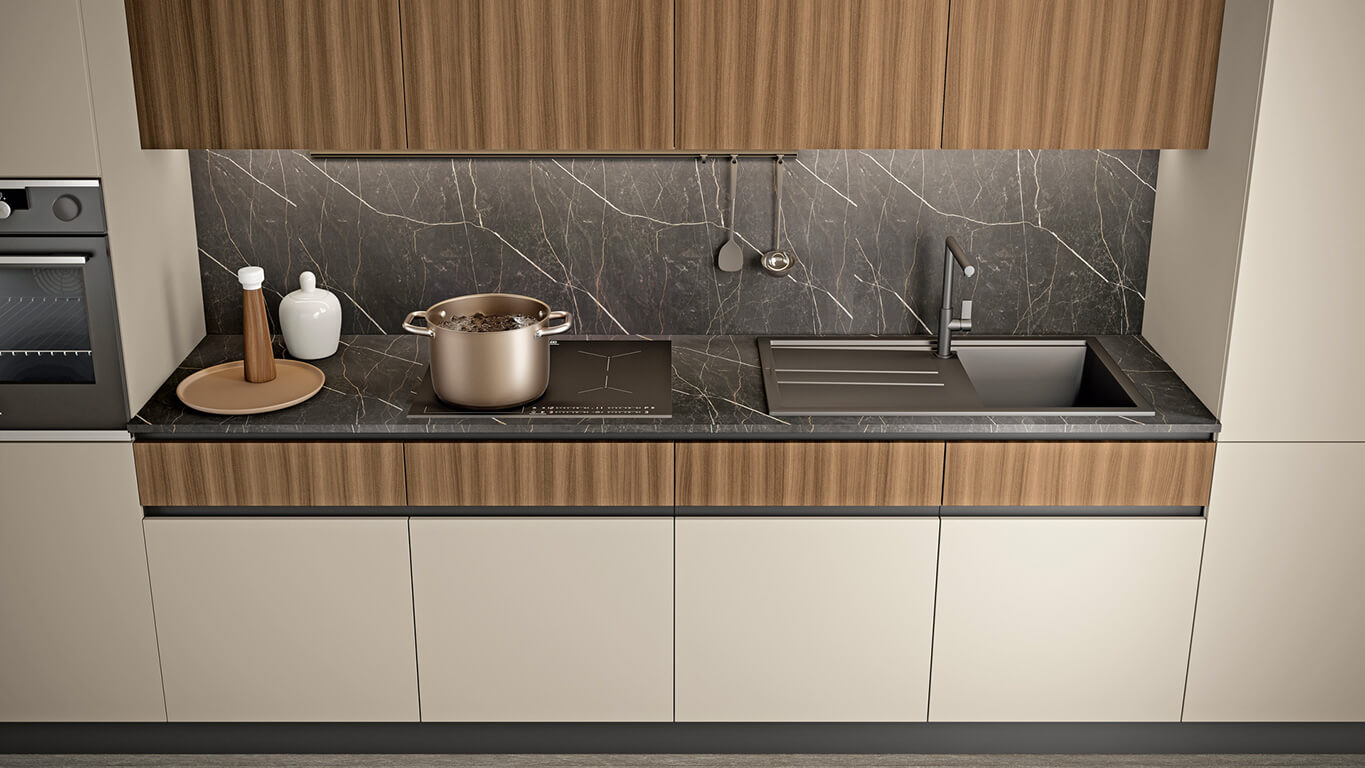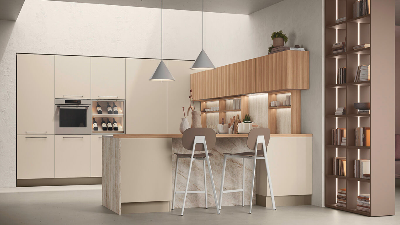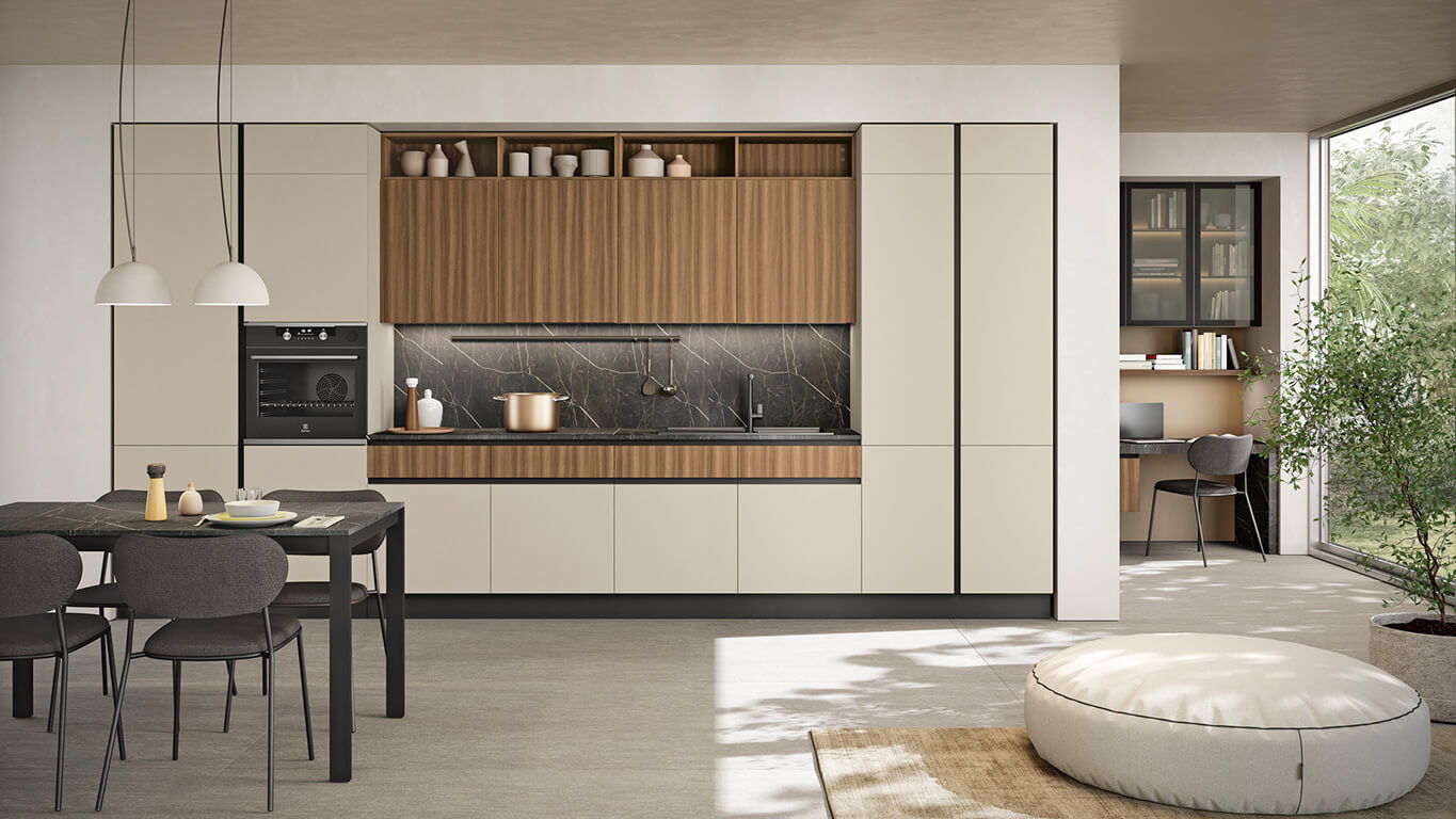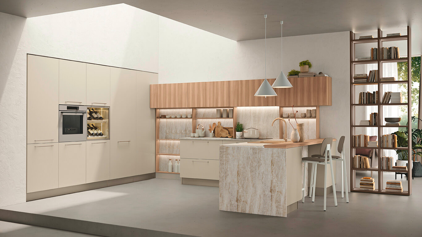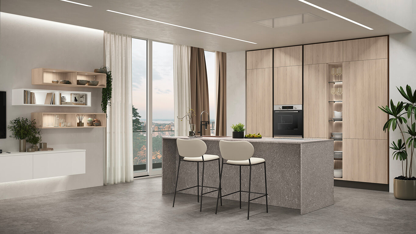 Ready unisce design contemporaneo e funzionalità avanzate, offrendo soluzioni pratiche e ricche di contenuti, dove semplicità e innovazione si fondono armoniosamente. Un cartella di materiali unici e facilmente coordinabili permette di creare composizioni sempre diverse ed eleganti, rendendo ogni cucina unica e personalizzata, creando spazi da vivere e condividere ogni giorno.