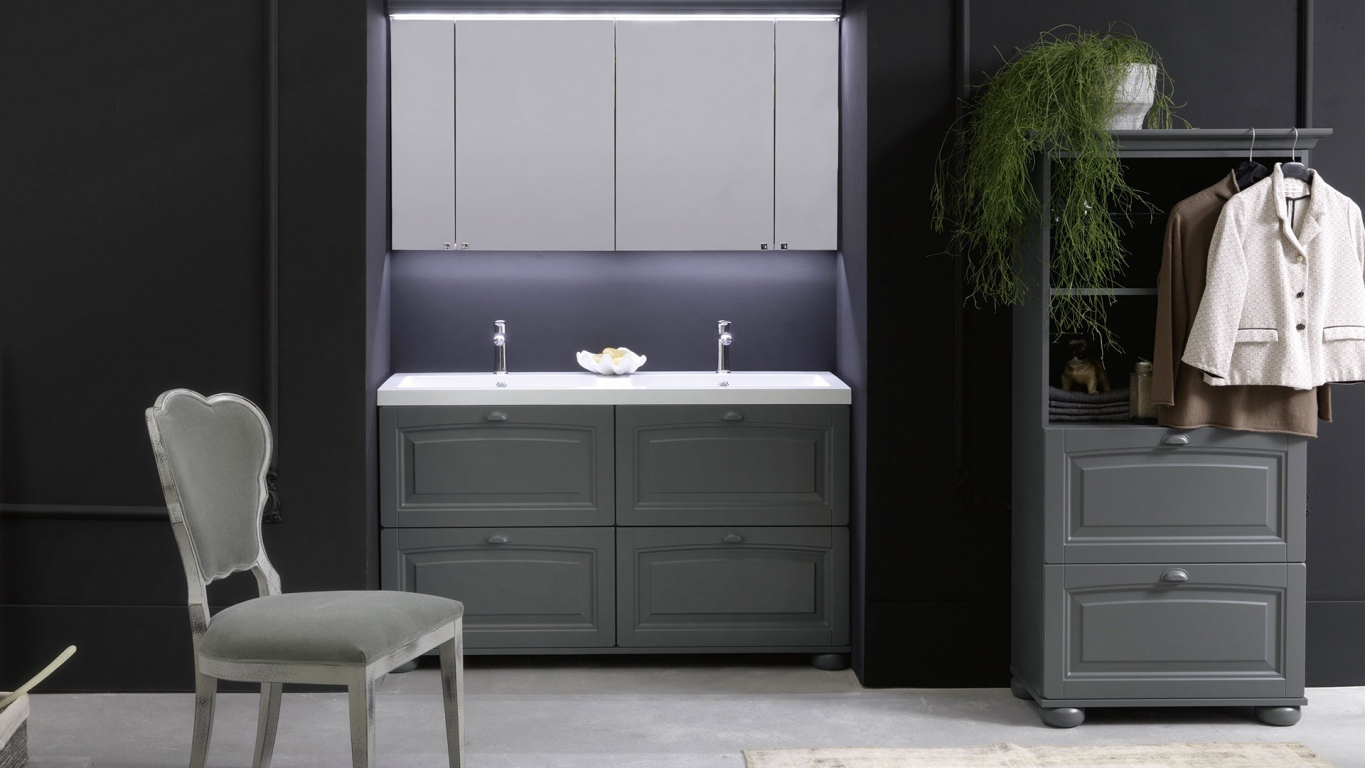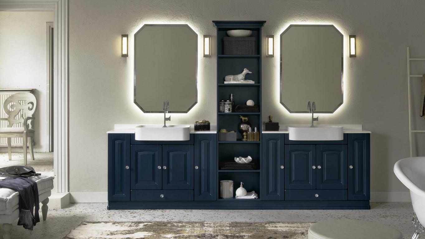 Riconoscersi nella tradizione. Non possono mancare elementi decorativi e richiami alla tradizione, in quanto sono i più tipici dello stile classico. Un'anta bugnata importante sia nella forma che nei materiali. Disponibile in versione laccata o in legno di frassino.